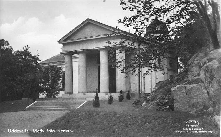 Tryckt text på bilden: "Uddevalla. Motiv från Kyrkan. "