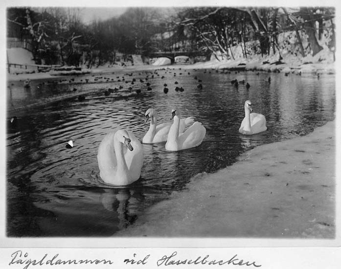Text på kortet: "Fågeldammen vid Hasselbacken".