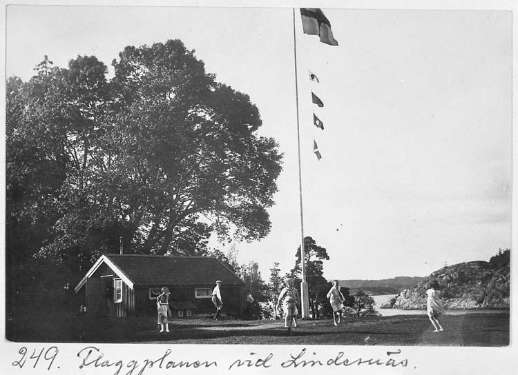 Barn som leker vid flaggstången på Lindesnäs, Uddevalla
