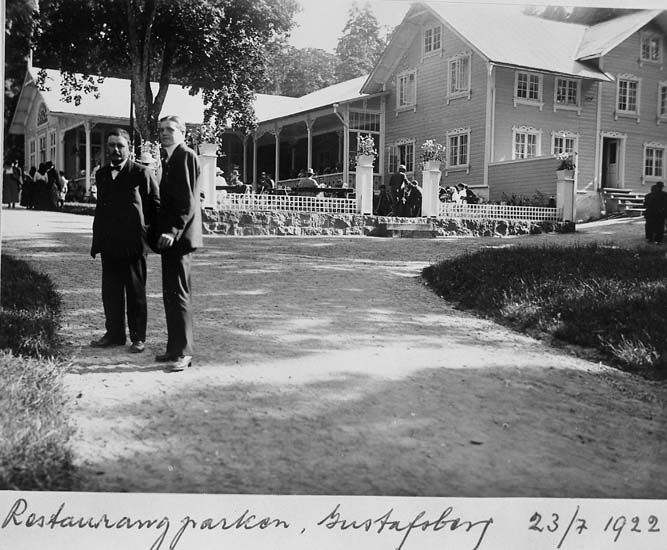 Text på kortet: "Restaurangparken, Gustafsberg 23/7 1922".