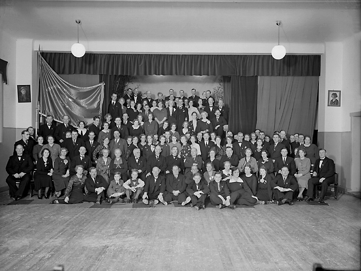 Enligt tidigare notering: "UVHJ-anställda med anhöriga på fest 1936."