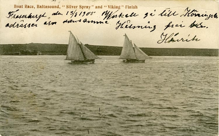 Notering på kortet: Boat Race. Baltasund. "Silver Spray" and "Viking" Finish.