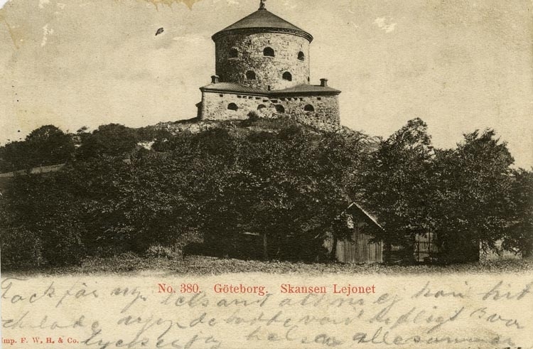 Notering på kortet: Göteborg. Skansen Lejonet.