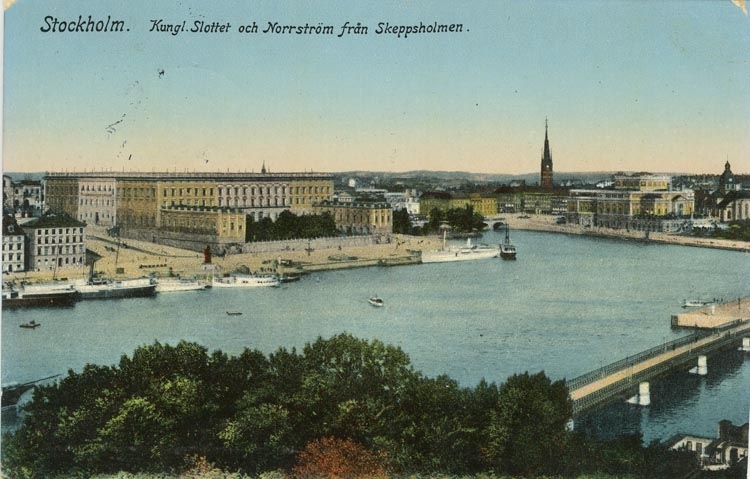 Notering på kortet: Stockholm. Kungl. Slottet och Norrström från Skeppsholmen.