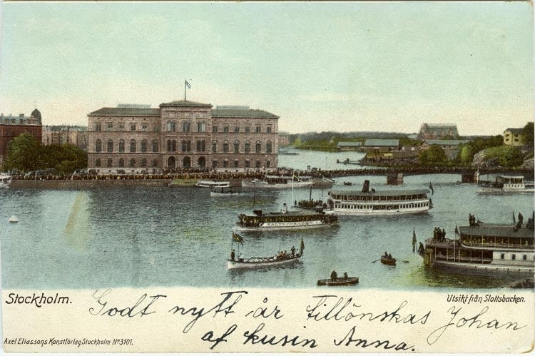 Notering på kortet: Stockholm. Utsikt från Slottsbacken.