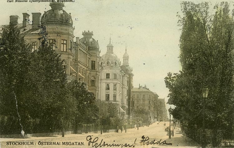 Notering på kortet: Stockholm. Östermalmsgatan.