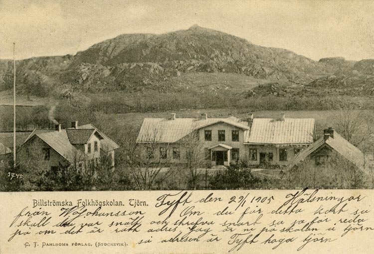 Notering på kortet: Billströmska Folkhögskolan, Tjörn.
