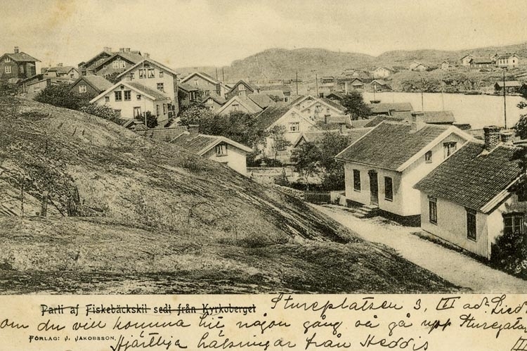 Notering på kortet: Parti af Fiskebäckskil sedt från kyrkoberget.