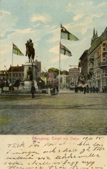 Notering på kortet: Helsingborg. Torget och Statyn.
