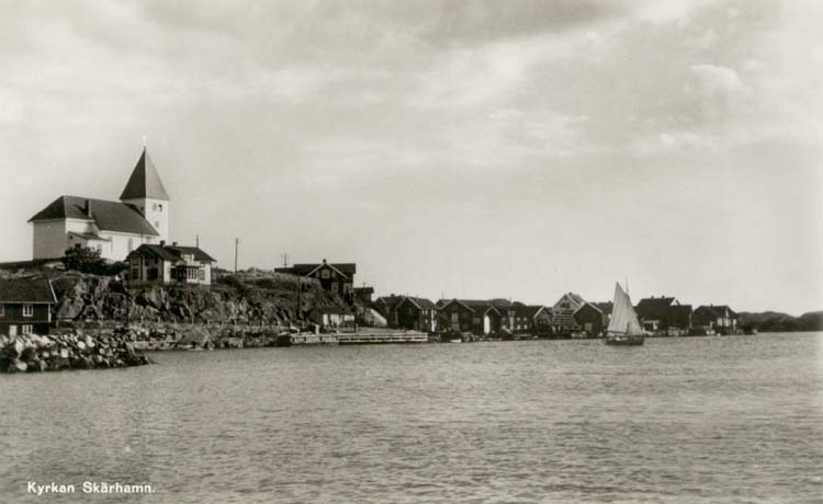 Titel: Tryckt text på kortet: "Kyrkan. Skärhamn."