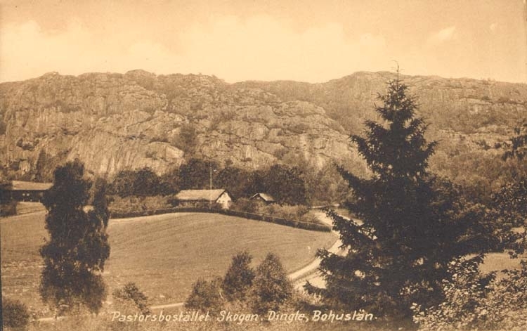 Tryckt text på kortet: "Pastorsbostället Skogen. Dingle. Bohuslän."