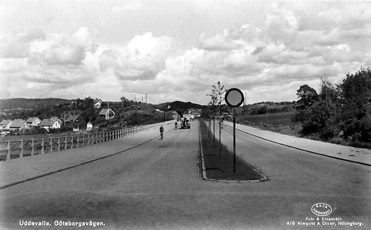 Tryckt text på vykortets framsida: "Uddevalla, Göteborgsvägen."