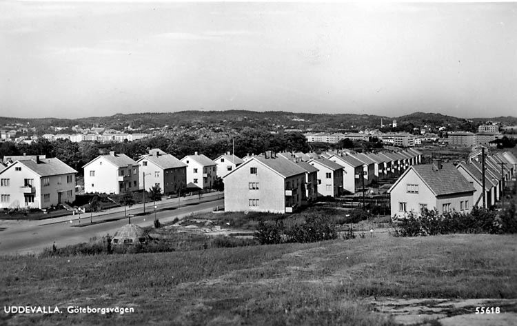 Tryckt text på vykortets framsida: "Uddevalla, Göteborgsvägen."