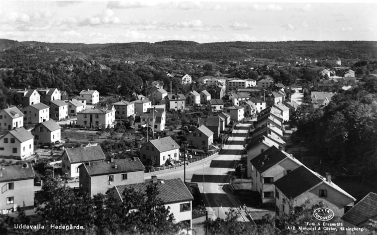 Tryckt text på vykortets framsida: "Uddevalla. Hedegärde."
