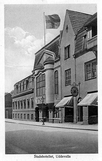 Tryckt text på vykortets framsida: "Stadshotellet, Uddevalla."