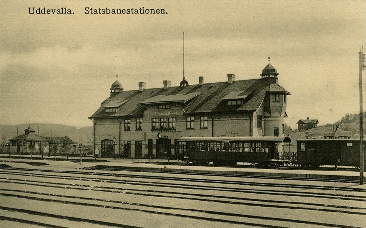 Tryckt text på vykortets framsida: "Uddevalla, Statsbananesationen."