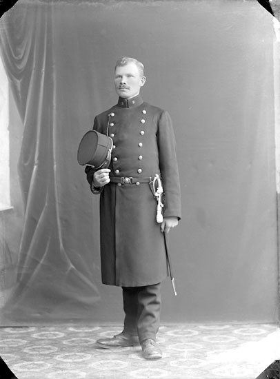 Enligt senare noteringar: "Ateljéfoto. Man i polisuniform. Polisman Svensson."
