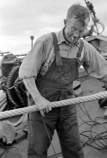 Arbete med garntrossen ombord på LL 1054 KNAPE