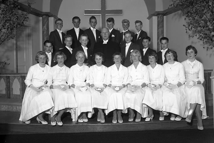 Enligt fotografens journal nr 8 1951-1957: "Konfirmander Pastor Hjalmarsson".
