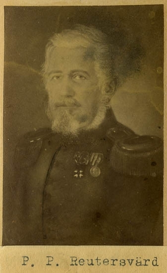 Text på kortets baksida: "Öfverstelöjtnanten vid Bohus Läns Regemente Pontus P:son Reutresvärd, f. 19 augusti 1794 d. 19 december 1862".