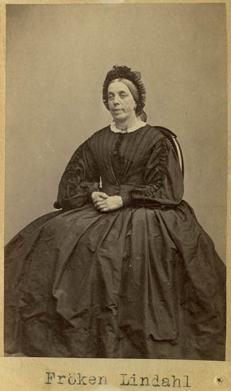 Text på kortets baksida: "Fröken Lindahl. Den första privatlärarinnan i Uddevalla".