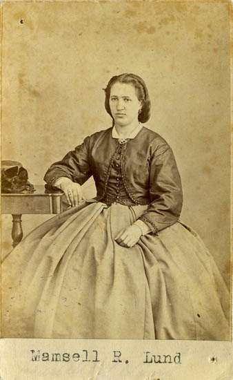Text på kortets baksida: "Mamsell Rosa Lund. Dotter till Fanjunk. Lund".