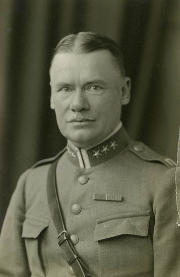 Text på kortets baksida: "Överste Erik Emil Harald Malmberg, f. 26/10 1879. Chef för Bohusläns reg. Generalmajor. F.d. Stadsråd".