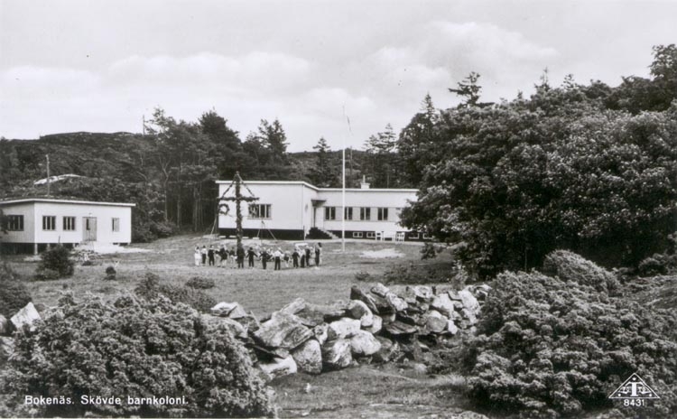 Tryckt text på kortet: "Bokenäs. Skövde barnkoloni".