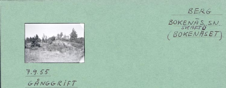 Noterat på kortet: "BERG BOKENÄS SN. SKAFTÖ (BOKENÄSET)".