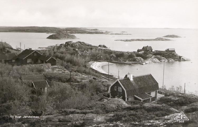 Tryckt text på kortet: "Vy över Jerkholmen".