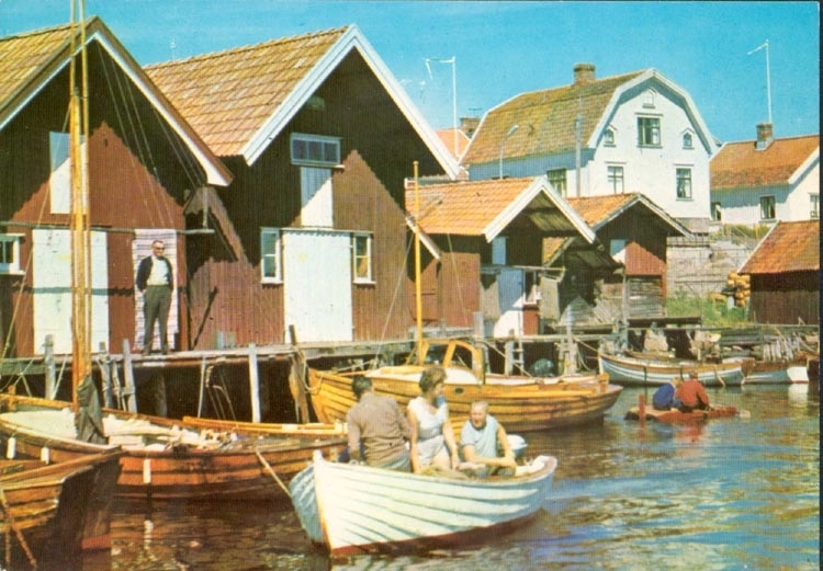Tryckt text på kortet: "Bohuslänskt fiskeläge".