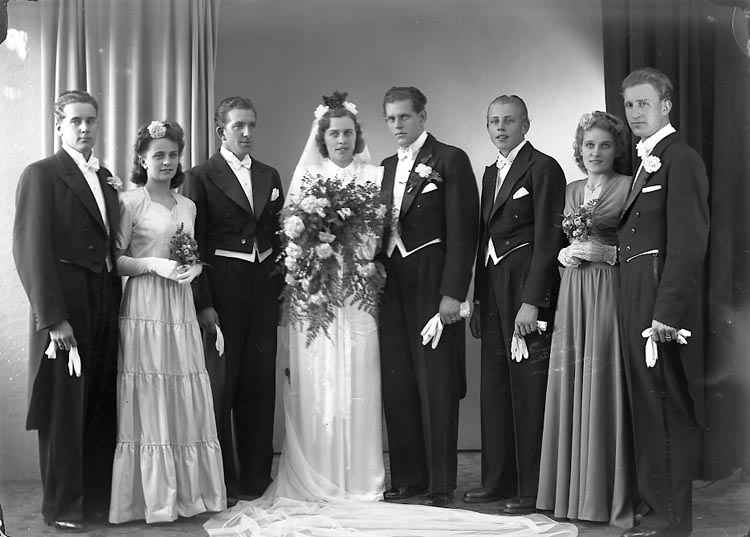 Enligt fotografens journal nr 7 1944-1950: "Johnsson, Brudp. med Tärnor o Marsk".