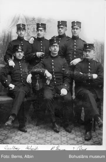 Enligt text på fotot: "Carlberg, Ahlqvist, H. Svensson, J. Åberg, Rosenqvist, Mannkrona, von Tell".