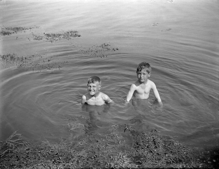 Enligt senare noteringar: "Två badgossar: Arne Blank och Henning i Lövvik".