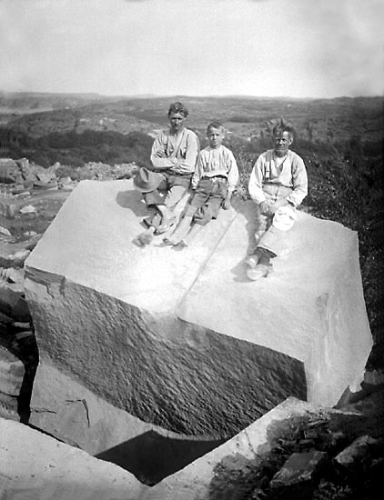 Paus på ett nyss uttaget stenblock, Eds stenbrott, Stångenäs