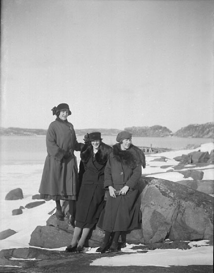 Enligt senare noteringar: "Här poserar bl a Tekla Börjesson en vinterdag då fjorden frusit".