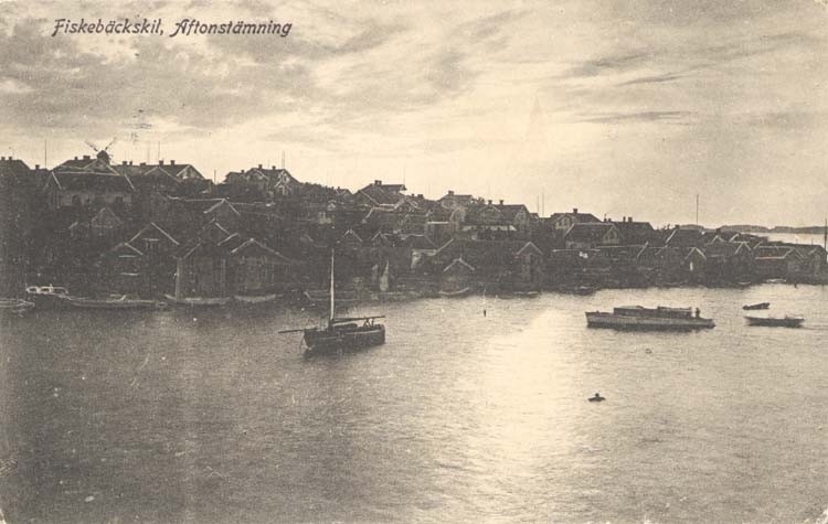 Tryckt text på kortet: "Fiskebäckskil. Aftonstämning."