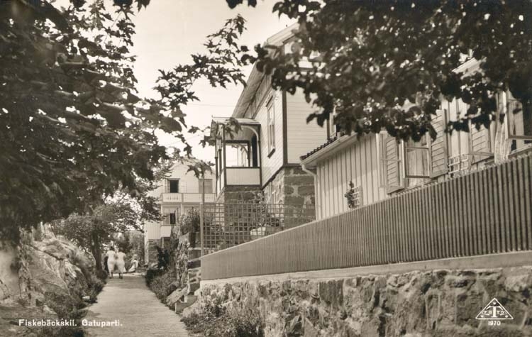 Tryckt text på kortet: "Gatuparti, Fiskebäckskil."