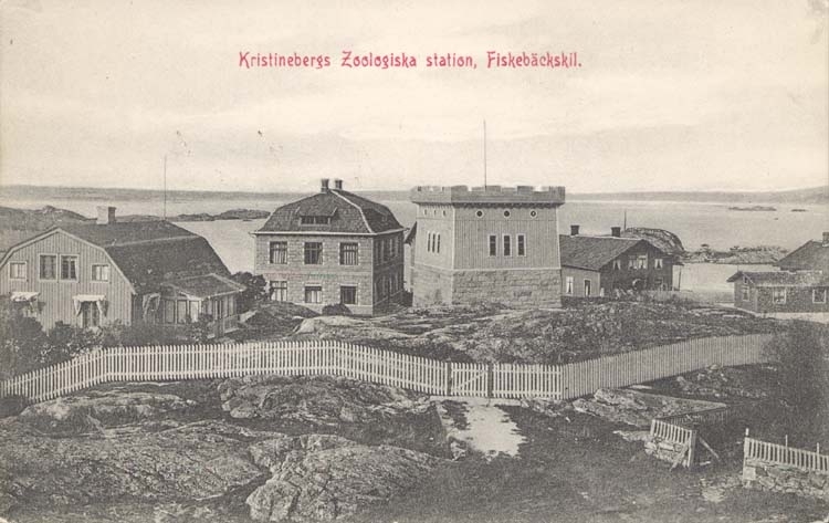 Tryckt text på kortet: "Kristinebergs Zoologiska station, Fiskebäckskil."