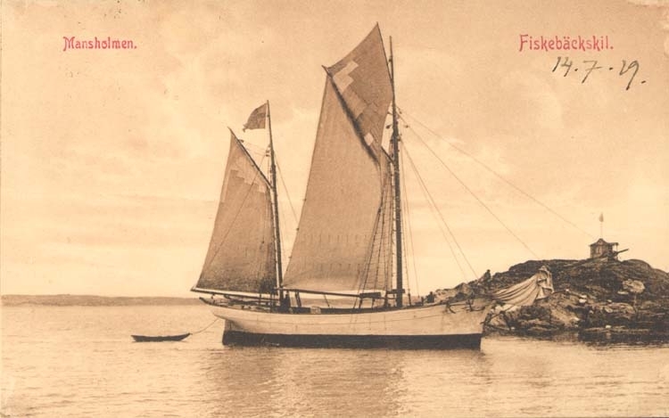 Tryckt text på kortet: "Mansholmen. Fiskebäckskil."