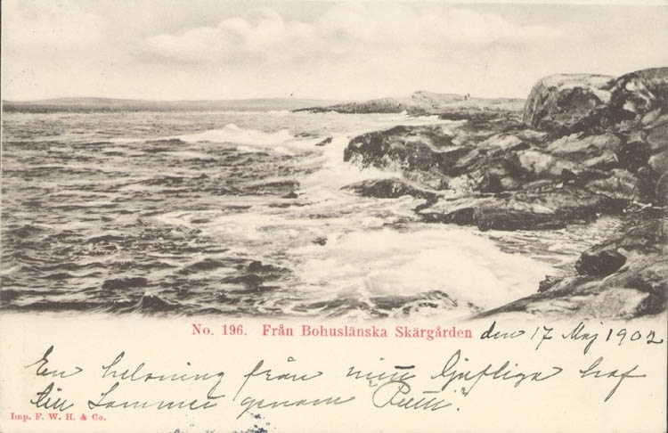 Tryckt text på kortet: "Från Bohuslänska Skärgården."