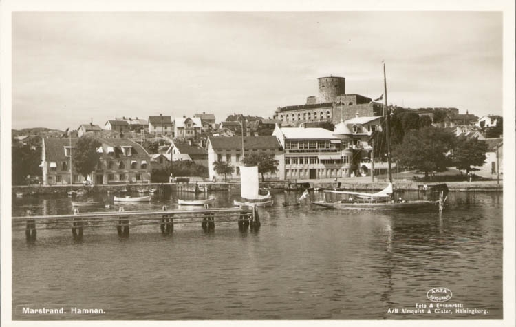 Tryckt text på kortet: "Marstrand. Hamnen."