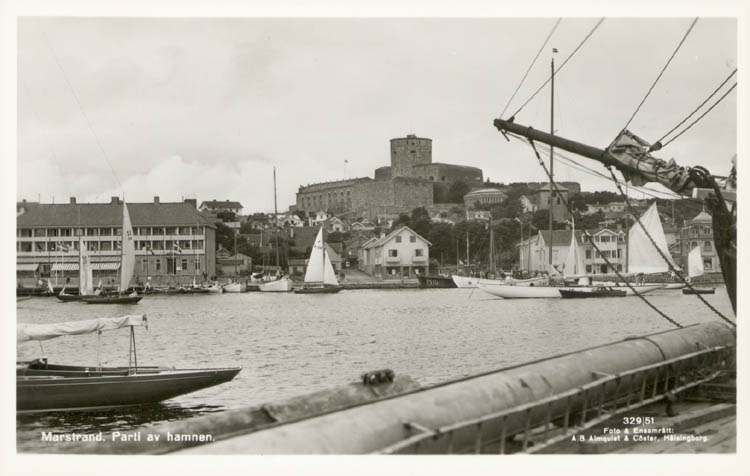 Tryckt text på kortet: "Marstrand. Hamngatan."