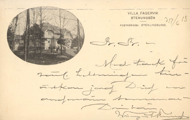 Tryckt text på kortet: "Villa Fagervik, Stenungsön."