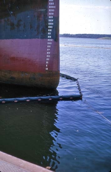 Vattenfalls oljehamn. Två typer av oljelänsa.