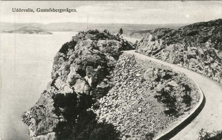 Tryckt text på vykortets framsida: "Uddevalla, Gustafsbergsvägen."