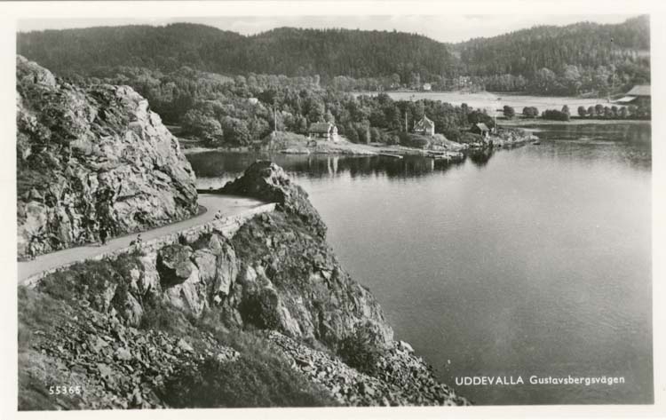 Tryckt text på vykortets framsida: "Uddevalla, Gustafsbergsvägen."