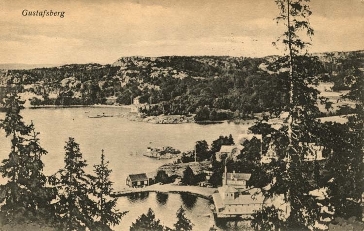 Tryckt text på vykortets framsida: "Gustafsberg."