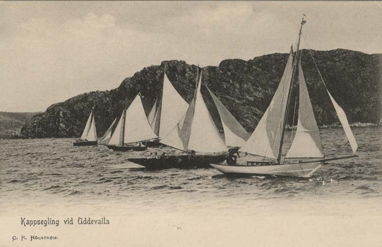 Tryckt text på vykortets framsida: "Kappsegling vid Uddevalla."