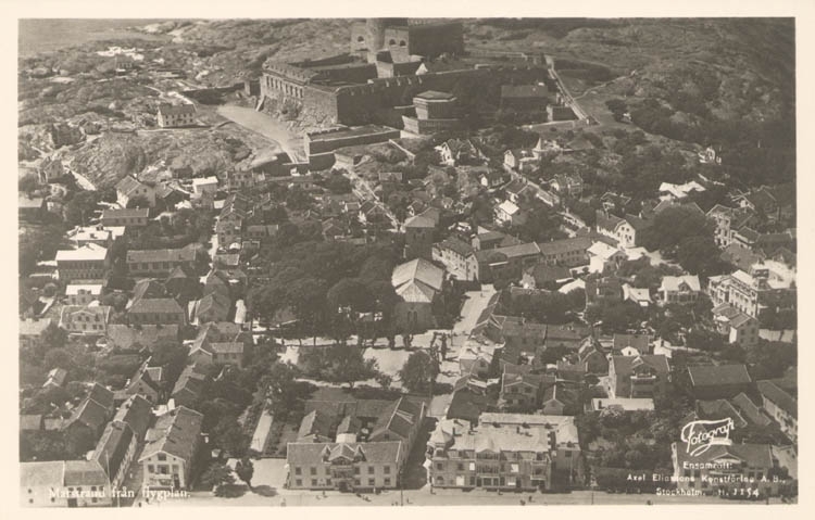 Tryckt text på kortet: "Marstrand från flygplan.."